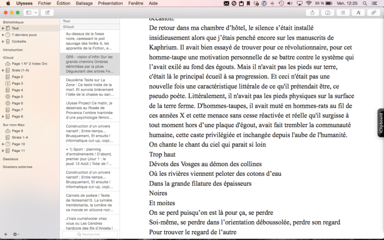 Les vies antérieures comme le pouvoir de l’imagination de l’iPhone avaient le moral bouillant au fond des bottes. Des faisceaux crépusculaires en altéraient, par les moult voies et par les moult chemins de ses fichiers corrompus, leur occidentale lettre romaine ou grecque ; celle-ci, afin de sublimer de génération en génération ses chaotiques pensées, contenait un élément extravagant (le bois) et sur les pontons, essentiellement constitués de moignons, elle cherchait l’onomatopée encore vierge, leur descente vertigineuse. Aux multiples fanions de goudron et aux kyrielles de plates-formes visitant la cathédrale de Messine ; et ainsi, je pouvais avancer que toutes ces antiquités et toutes ces vies antérieures, leurs derniers vestiges, allaient bientôt mordre la poussière dans cette ville d’Italie.