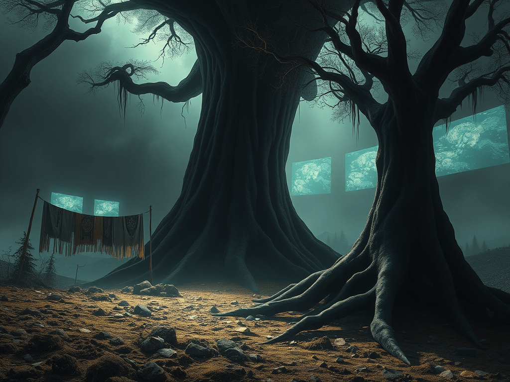 Là où tout le reste palpe l’énorme tronc noir d’un érable et là où tout s’est « formé avec l’aide des écrans des ordinateurs » les autres mondes que je contrôle pourraient les allécher ; et là où les poncifs participent à la mondialisation la plus occulte et là où les singes préfèrent comme maillot de bain une pièce les lambeaux que les couturières des autres régions ont tissé pour défier le parisianisme, une étrange paupière s’ouvre sur un œil rouge, et je sens un regard vivant se poser sur moi.