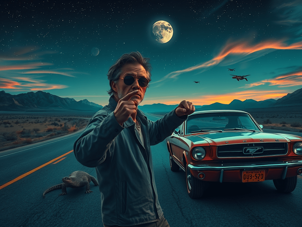 Mais plus tard l’obscurité le sidéra, il se trouvait encore sur l’autoroute et il pensa que même les chameliers qu’il croisa, et qui se dévergondaient pour ne pas à avoir à affronter un énième coup de Trafalgar, avaient un tas de raisons d’être en colère et intransigeant envers lui. Mais aussi pour ne pas défaillir face au travail stakhanoviste qui les attendait. Mais qui avait trouvé un angle intéressant depuis que Raoul Duke avait substitué les substances analgésiques foudroyantes du sanctuaire où le Docteur Gonzo reposait.